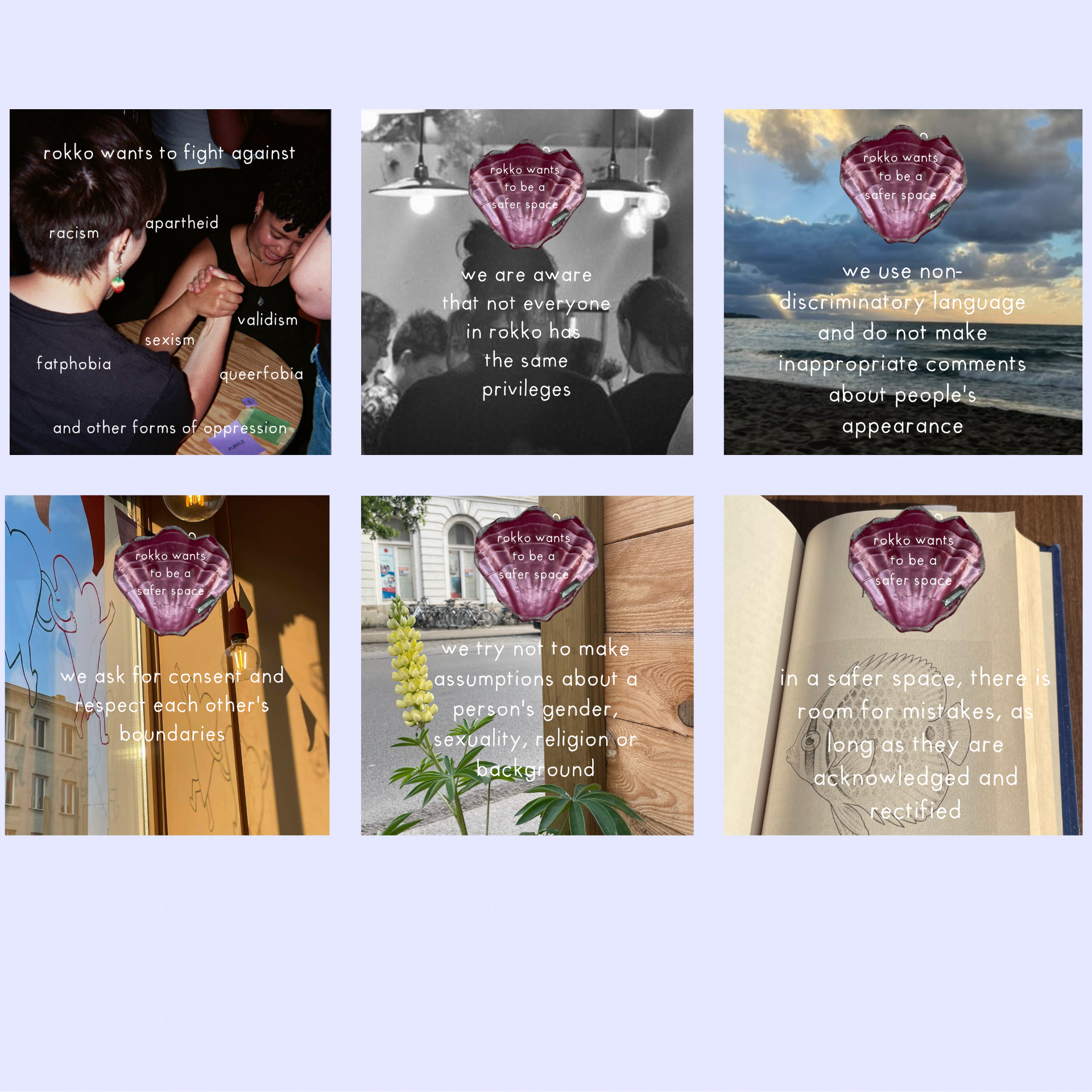 rokko is a soft place that seeks connection from open dialogue. Mistakes are allowed, there is room to learn from each other. There is no place for discrimination in any form.