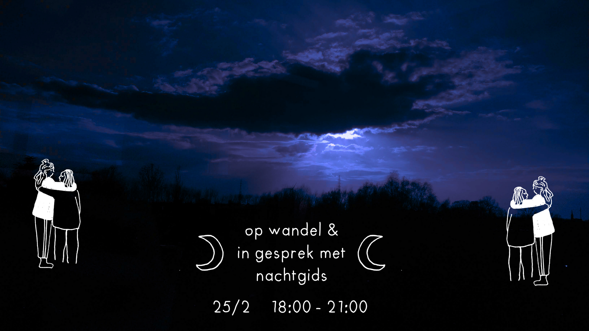 “het donker is niet het einde van alles, maar het begin. het is de eerste hap naar adem.” - marjolijn van heemstra in nachtgids. duik samen met ons in de duisternis. we starten de avond met onze versie van een nachtwandeling, daarna gaan we samen in gesprek over het boek. vrijwilligers line en laura lazen het boek en gidsen jullie door de avond heen: je kiest zelf of je graag het boek al gelezen hebt of voor de volledige verrassing gaat.